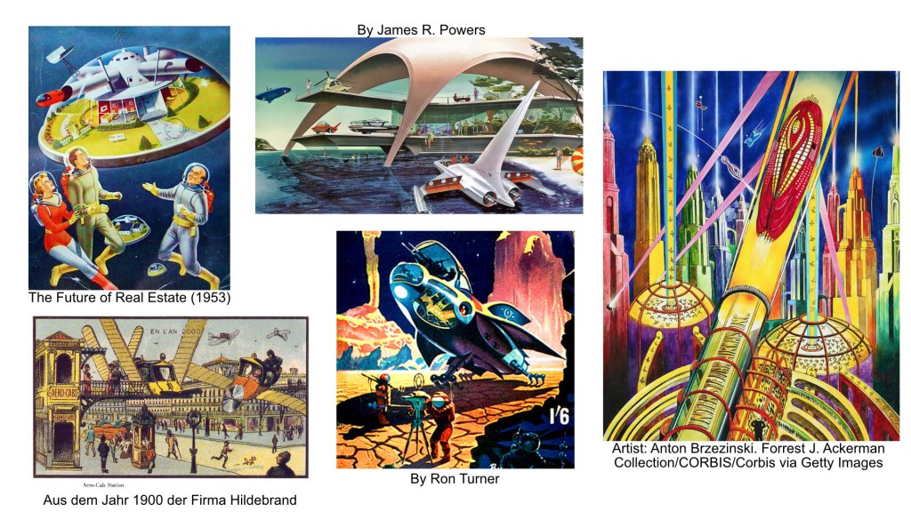 Zum Abschied wollte ich noch kurz zeigen, wie sich die Menschen im letzten Jahrhundert die Weltraumfahrt und Raumfahrt dieses Jahrhunderts vorgestellt haben: Ich warte immer noch auf mein flaches Scheiben-Weltraumhaus à la Lautlos im All. Aber man kann ja träumen, vielleicht ist all das irgendwann doch noch Realität – und bis dahin haben wir die Filme and Retrofuturismus…