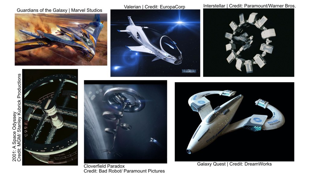 Welches Raumschiff in einem Film verwendet wird, hängt stark vom Kontext des Filmes ab. Ist es ein Film über eine Zukunft nicht all zu weit entfernt von unserer Gegenwart, sind die Raumschiffe meistens sehr nah an unseren aktuellen Raumschiffen orientiert (etwa bei Gravity oder Der Marsianer). Geht es noch etwas weiter in die Zukunft, wie bei Interstellar, werden die Schiffe aber auch schon mit mehr kreativen Freiheit designt. Ähnlich ist das auch bei Cloverfield Paradox und Passengers. Auch der ultimative Weltraumklassiker und schlicht Filmklassiker 2001: A Space Odyssey zählt in diese Kategorie. Filme, die die Vergangenheit abbilden, wie etwa Apollo 13, lasse ich hierbei mal außen vor, weil sie in dem Sinne ja zumindest versuchen, die Realität abzubilden und ich interessiere mich jetzt eher für die unglaublichen Raumschiffe, die etwas schaffen, was unsere Raumschiffe noch nicht können. Dann gibt es die absolut abgespacten Schiffe, die es etwa bei Star Wars, Star Trek, Galaxy Quest, Valerian, Per Anhalter durch die Galaxis und Guardians of the Galaxy gibt, auch wenn einige dieser Filme in einem Paralleluniversum unserer Welt spielen.