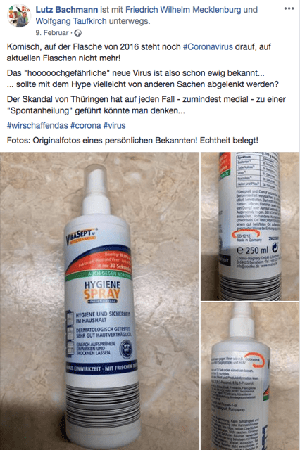 Die nach seinen Aussagen authentischen Bilder wurden zusätzlich grafisch mit orangefarbigen Einkreisungen bearbeitet. Bachmann schlussfolgert, dass es das Coronavirus schon lange gebe und es sich hier nur um ein mediales Ablenkungsmanöver handle. Auch wenn die Bilder dies suggerieren, so stimmt das nicht. Die Familie der Coronaviren ist zwar bereits seit den 1960er Jahren wissenschaftlich bekannt, doch handelt es sich bei SARS-CoV-2 um ein neuartiges Virus, was beispielsweise nichts mit dem 2002 aufgetretenen SARS-CoV zu tun hat, welches laut Helmholtz Zentrum für Infektionsforschung (HZI) nahezu 1000 Todesopfer forderte.