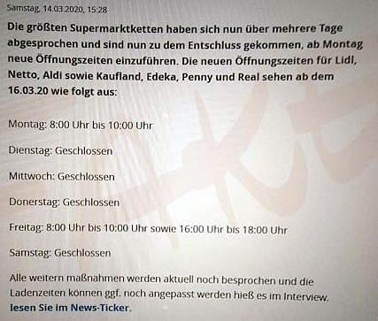 Dieser angebliche FOCUS-Artikel ist allerdings komplett gefälscht und erschien so nie auf der Website. Kritisch sollten die Leser vor allem bei den Rechtschreibfehlern wie „maßnahmen“ oder falschen Bezeichnungen wie „Ladenzeiten“ anstelle von Öffnungszeiten werden.