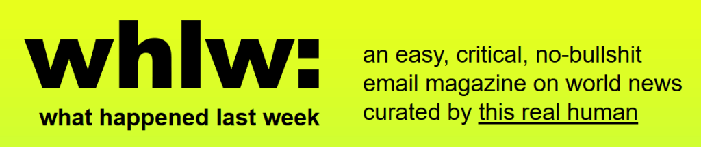Bei what happened last week handelt es sich um einen E-Mail-Newsletter, der montäglich ins Postfach geflattert kommt. Und dieser handelt – Überraschung – von dem, was in der letzten Woche so passiert ist. Die Politikwissenschaftlerin Sham Jaff stellt die News eigenhändig und zugänglich zusammen. Und sie sind zum größten Teil positiv! Ich will gar nicht wissen, was da für eine unglaubliche Arbeit hinter steckt, und ziehe absolut meinen Hut. Das kleine Magazin ist in englischer Sprache und behandelt Neuigkeiten aus der ganzen Welt.