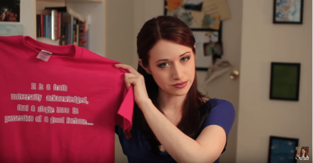 Richtig, es ist Stolz und Vorurteil von Jane Austen – oder besser gesagt in diesem Fall ist es Pride and Prejudice im englischen Original, denn der deutsche Einstieg gefällt mir zumindest in der übersetzten Ausgabe, die ich von Austens Werken besitze, nur halb so gut. Außerdem ist es ebenjener englische Satz, der als T-Shirt-Spruch von einer gewissen Lizzie Bennet in die Kamera gehalten wird, um eine Vlog-Serie über ihr Leben zu starten. Und darüber möchte ich hier etwas erzählen: The Lizzie Bennet Diaries.