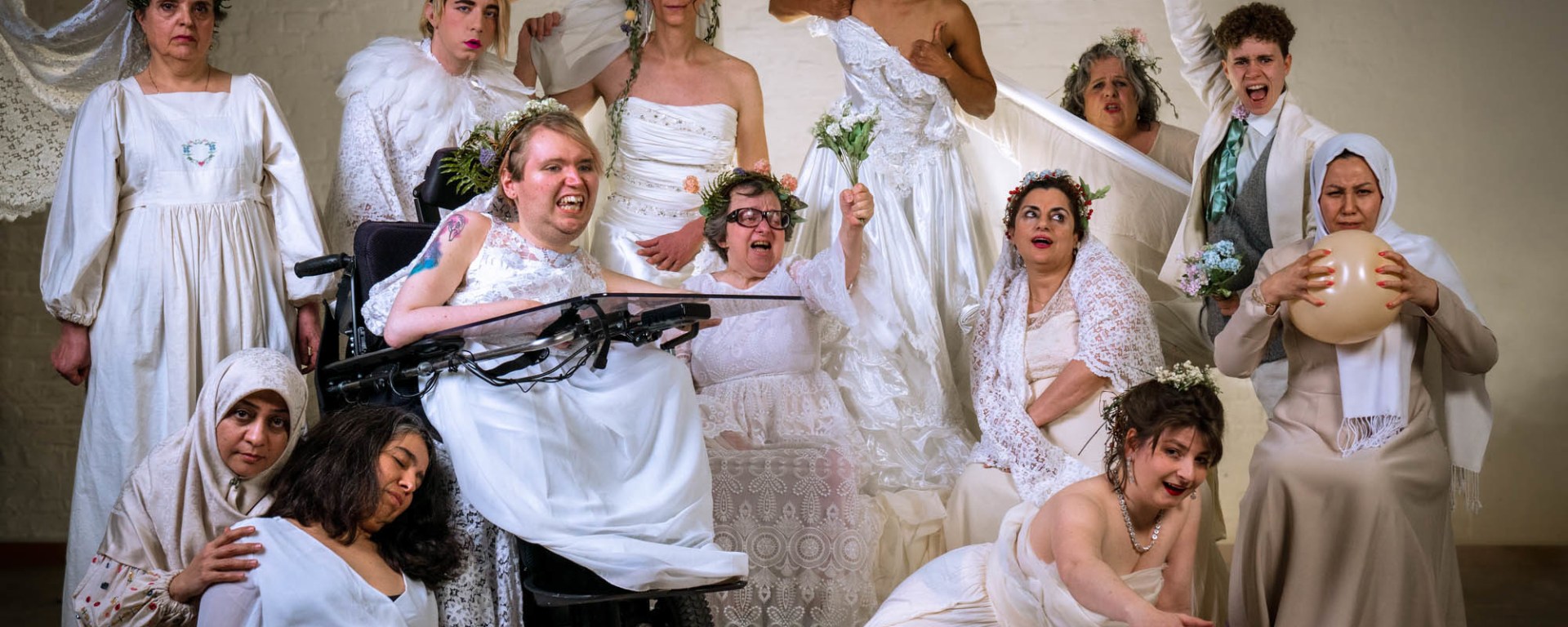 Mit Liebe als zentralem Thema fängt das Stück direkt mit dem weltweit bekannten, kommerziellen Symbol dessen an: Einer Hochzeit. Alle Menschen auf der Bühne sind in Hochzeitskleid und Anzug fein gemacht und begrüßen das Publikum beim Eintritt in Formation. In den folgenden eineinhalb Stunden wird das Stück Liebe in ihrer heutigen, kommerzialisierten, an Bedingungen geknüpften Form auseinandernehmen. Zwischen pointierten Metaphern, Texten aus den Leben der Schauspieler:innen und Vorträgen von Gäst:innen weiß man manchmal gar nicht, wohin mit sich selbst. Das Stück schafft es, ein Bild der Gesellschaft zu malen, in dem jede:r die Regeln der Liebe kennt, ohne dass sie ausgesprochen werden. Gleichzeitig bringt es einem selbst nahe, wie man sich „heutzutage“ noch lieben kann und gibt einem eine kleine Anleitung an die Hand.