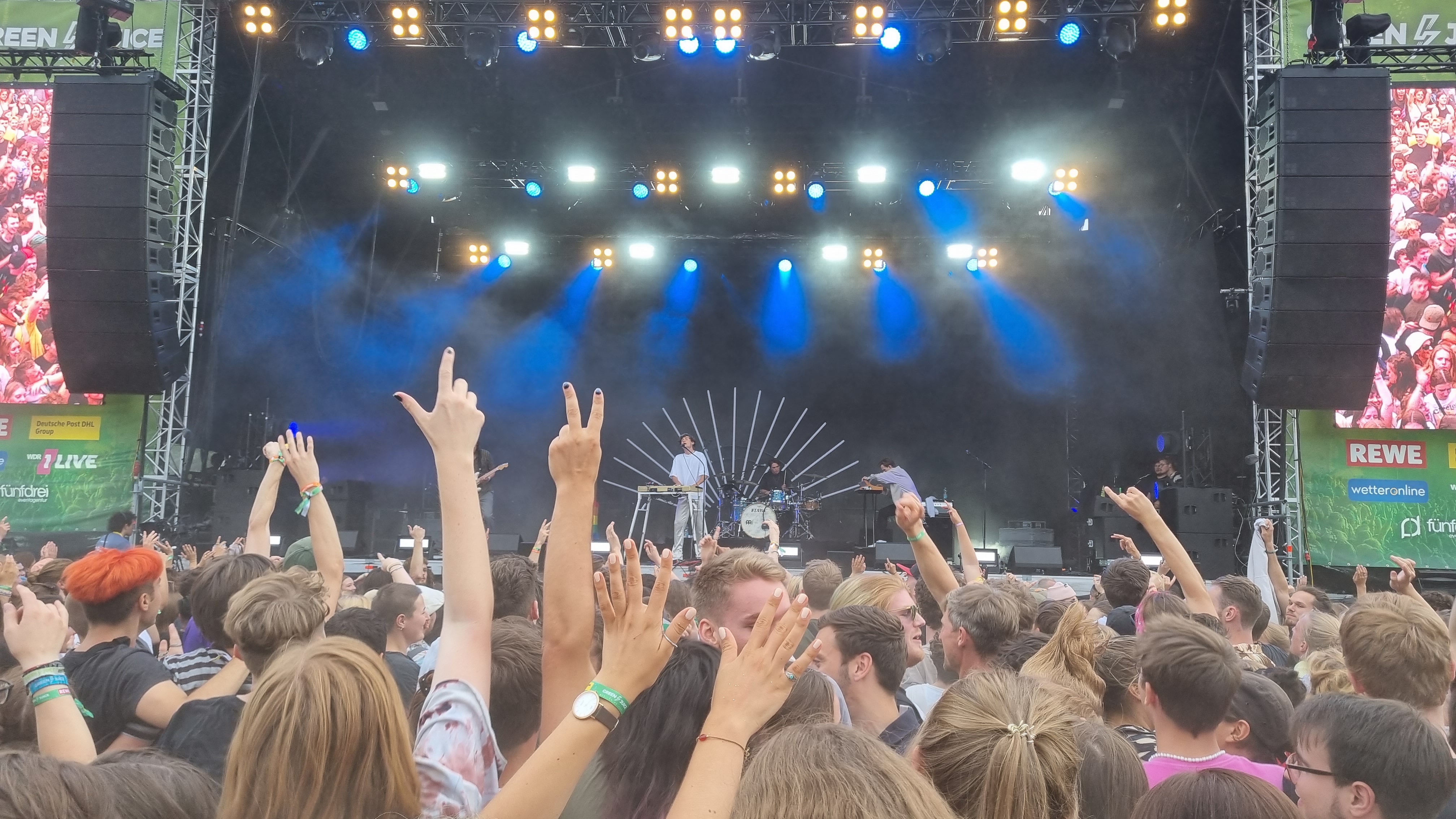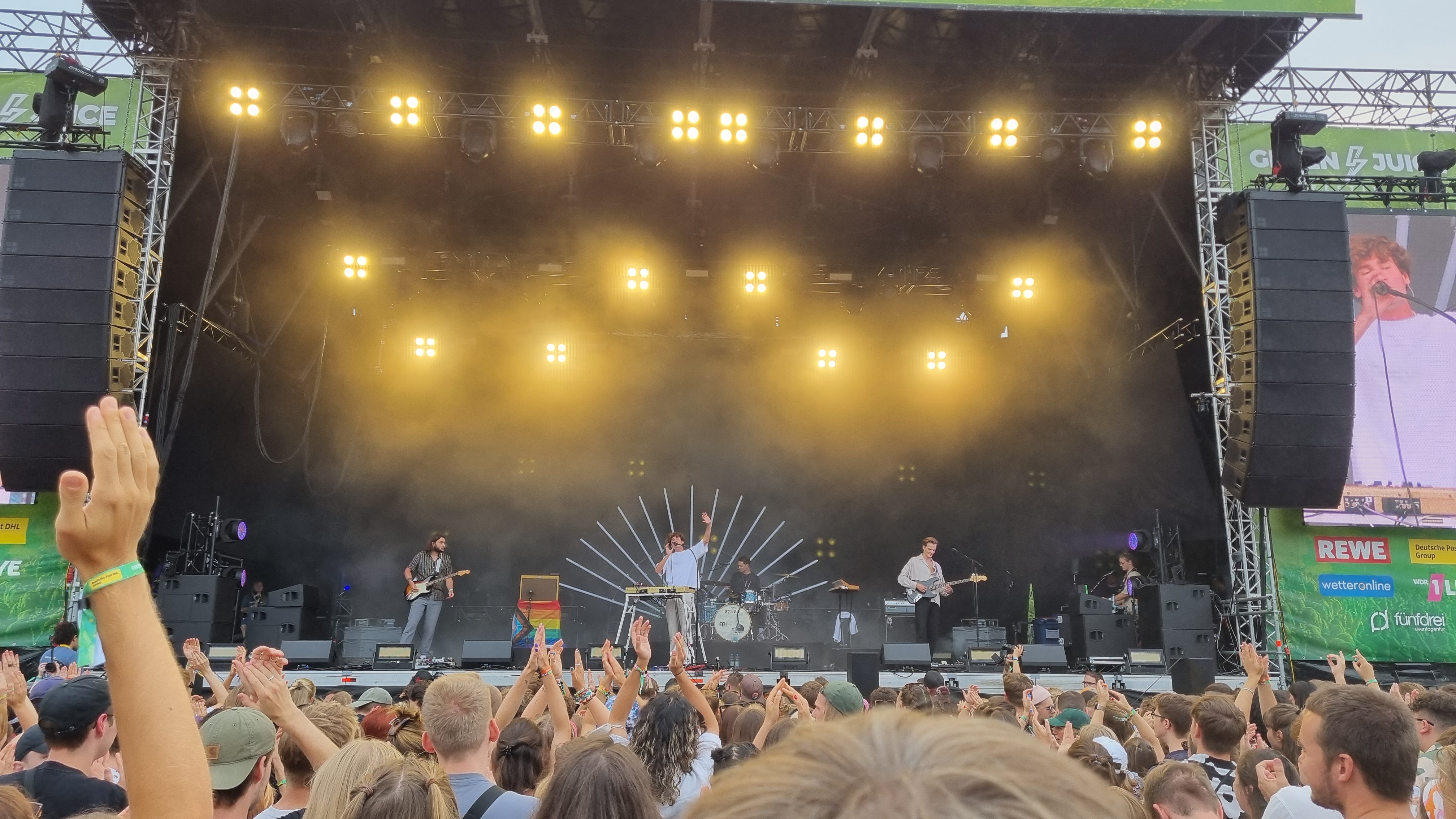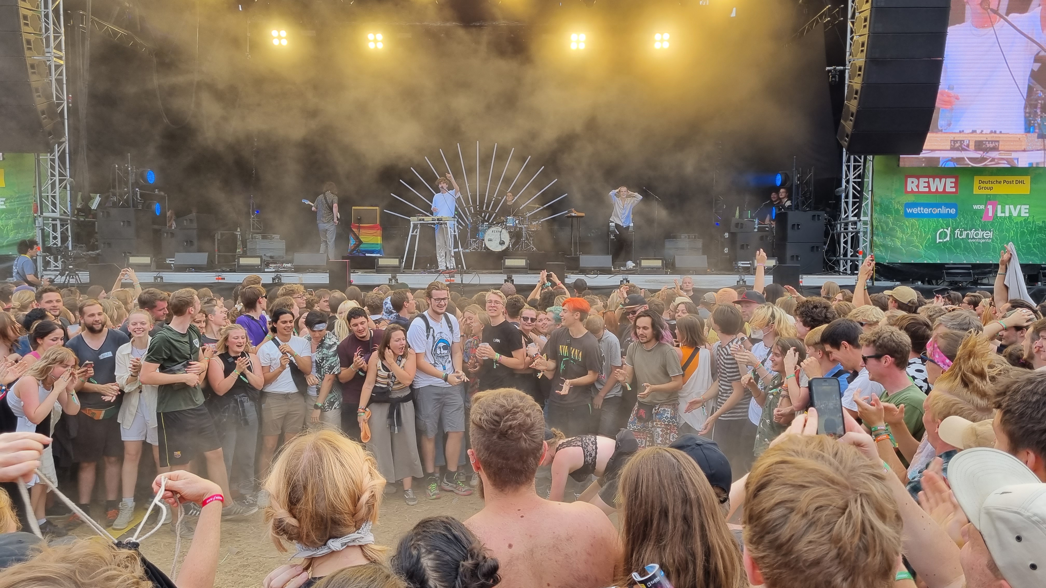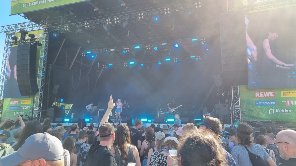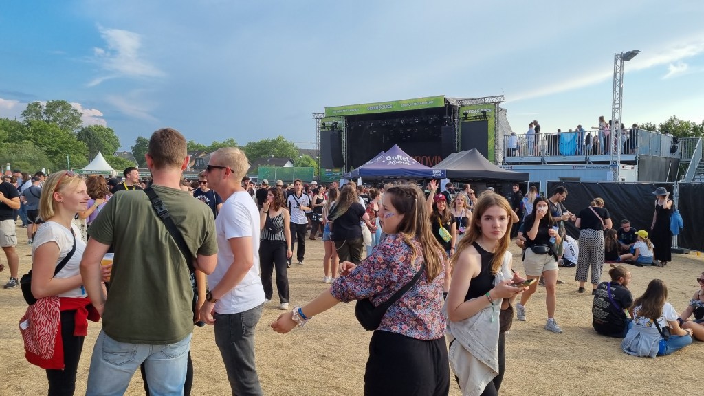 Gestartet hat das Festival in der beschaulichen Reihenhaussiedlung mit der Sängerin Melé. Ihr Pop-Sound hat die Festivalbesucher:innen ordentlich zum Tanzen gebracht, auch wenn das Gelände sich erst langsam füllte. Ihr populärster Song „deine cousine“, den sie eigentlich nur als Joke released hat, brachte dann den ein oder anderen Fan zum Mitsingen. Nach ihrem Auftritt konnten die Zuschauer:innen weiter zur zweiten, kleineren Bühne. Bei Techno-Sounds ließen so einige dort ihrer Energie freien Lauf, hüpften im Takt und wirbelten den Staub vom Boden hoch. Da kam eine Abkühlung mit dem Wasserschlauch einigen ganz gelegen. Der zweite große Act des Tages war die Indie-Pop-Band Jeremias. Seit spätestens 2021 ist die Band mit ihrem Debüt-Album „golden hour“ bei den meisten Musik-Nerds bekannt. Besonders gut gefallen hat dem Publikum, dass die Band ihren neuen Hit „Unique“, noch vor der offiziellen Veröffentlichung, für sie spielte. Einen Song über Liebe, da kann man bei den jungen Männern mit Seidenhemd und Perlenkette schon mal schwach werden. Auf den Headliner des Festivals konnten sich die Zuschauenden schon am Donnerstagabend freuen: Beatsteaks. Mit ihrem Auftritt kamen auch deutlich mehr ältere Männer und rockig gekleidete Menschen vor die Bühne. Die Band kündigte zu Beginn des Auftritts an, dem Publikum „den Stock aus dem Arsch ziehen zu wollen“. Das schafften sie. Während die Band für ordentlich Stimmung sorgte, das Publikum immer wieder ihren Namen rief und sich Moshpits bildeten, ging hinter der Bühne langsam die Sonne unter. Der Frontsänger Arnim Teutoburg-Weiß suchte immer wieder Kontakt zum Publikum und hatte sichtlich Spaß, ordentlich einzuheizen. Während der Show wechselte er irgendwann sein Shirt in eins mit der Aufschrift „Lover“, tauschte seinen Samthut mit einem weißen Fischerhut und stimmte die Backstreet Boys an. Ein wilder Mix, den auch er schmunzelnd erkennen muss. Doch das Publikum ist genauso wild, wie er glücklich feststellte. Wie man sich beim Publikum beliebt macht, weiß er ganz genau: „Wir haben schon auf vielen Konzerte und Festivals gespielt, aber dies ist eins der Besten!“ Zum Abschluss startete hinter der Bühne noch ein Feuerwerk. Nach dem letzten Auftritt gingen die meisten Besucher:innen mit einem Lächeln zu den Getränkeständen. Ein gelungener erster Festivaltag.