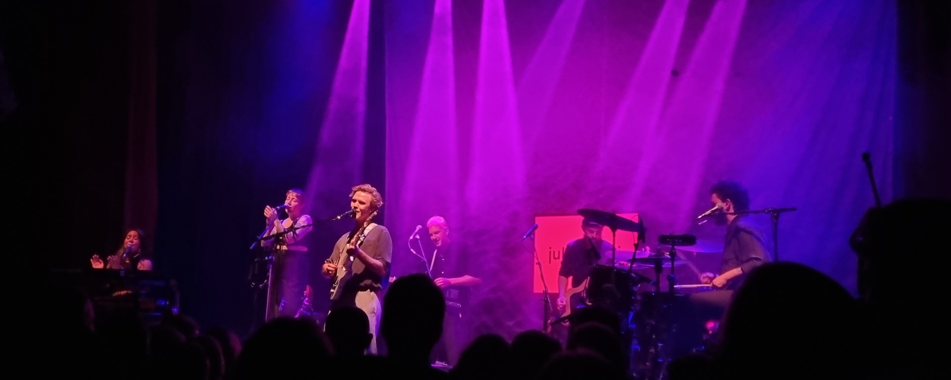 Nach der Corona-Pause freute sich die Band Jules Ahoi sehr, dass sie endlich wieder live vor Publikum auftreten durften. In ihrer ersten Ansprache bedankten sie sich deswegen beim Publikum, das ebenfalls lange auf diesen Moment warten musste. Am liebsten wäre der Frontsänger auch, wie bei seinen Auftritten in der Vergangenheit, in das Publikum gegangen, um seinen Fans näher zu sein. Aber bei der aktuellen Tour ist er vorsichtig. Zu groß sei die Gefahr, sich anzustecken und Auftritte absagen zu müssen. Stattdessen setzte sich der Sänger auf die Bühne, während er ein paar schwermütige Songs auf seiner Akustikgitarre spielte. Den Song To Make a Heart Beat widmete er ausdrücklich seinen Fans, die nach seiner Ankündigung ein Seufzen nicht verbergen konnte.