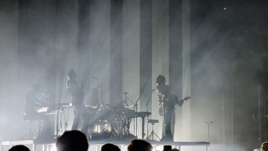 Während des Auftritts änderte sich immer wieder das Bühnenbild. Nachdem die Bühne kurz dunkel war, standen die Männer plötzlich frontal zum Publikum. In nur wenigen sehr kurzen Ansprachen richtete sich die Band ans Publikum, zeigte ihre Freude, Musik machen zu können und so eine große Fan-Gemeinschaft zu haben. Ein Song ging in den nächsten über, sodass gar nicht viel Zeit für Ansagen war und der Auftritt in vielen Momenten einer Jam-Session glich. Obwohl die Bewegungen aufeinander abgestimmt waren und der Auftritt sehr durchdacht wirkte, hatte die Show ihre spontanen Momente, in denen eines der Bandmitglieder in die Menge lächelte.