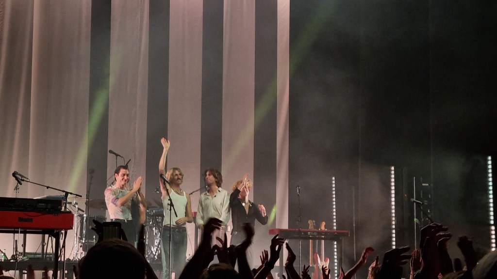 Wenn man die Band nicht kennt, erinnert ein Auftritt von ihnen an eine Mischung aus ABBA und Queen. Sie selbst sprechen von Disko-Sound und wurden von den 1970ern und modernen Klängen inspiriert. Diese Mischung hat am Dienstag nicht nur Kölner, sondern auch Fans aus dem Ausland angezogen, sodass man im Palladium viele aufgeregte Stimmen auf Englisch oder Spanisch hören konnte. Besonders auffällig waren die Outfits des Publikums, das, sich der Musik und der Band angepasst, in bunten Shirts oder Hemden, weiten Hosen und bunten Accessoires kam. Der Auftritt war von der ersten bis zur letzten Minute stimmig, hatte kleine schöne Momente, die sowohl von der Band als auch vom begeisterten Publikum ausgingen und hat die Fans mit einem Lächeln nach Hause gehen lassen.