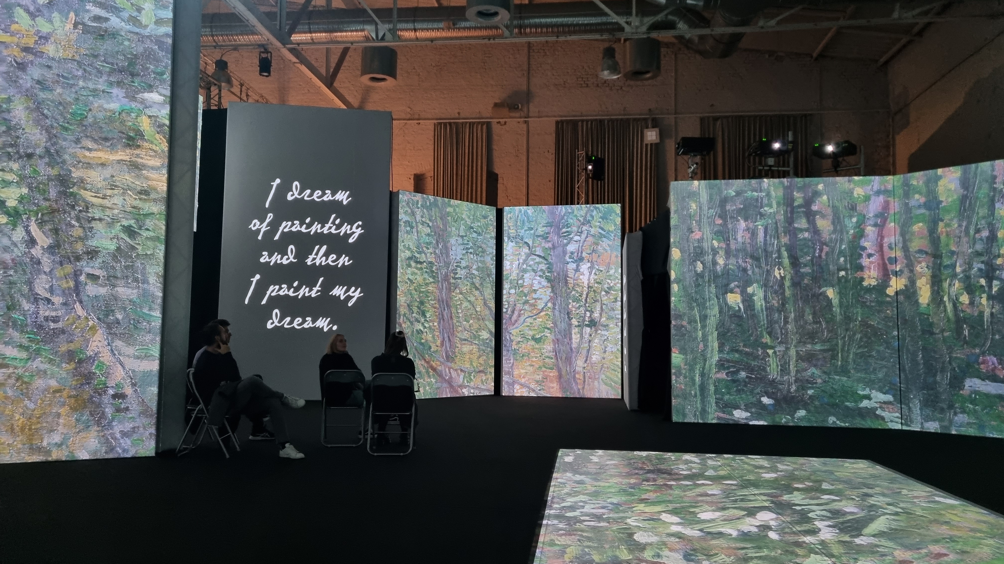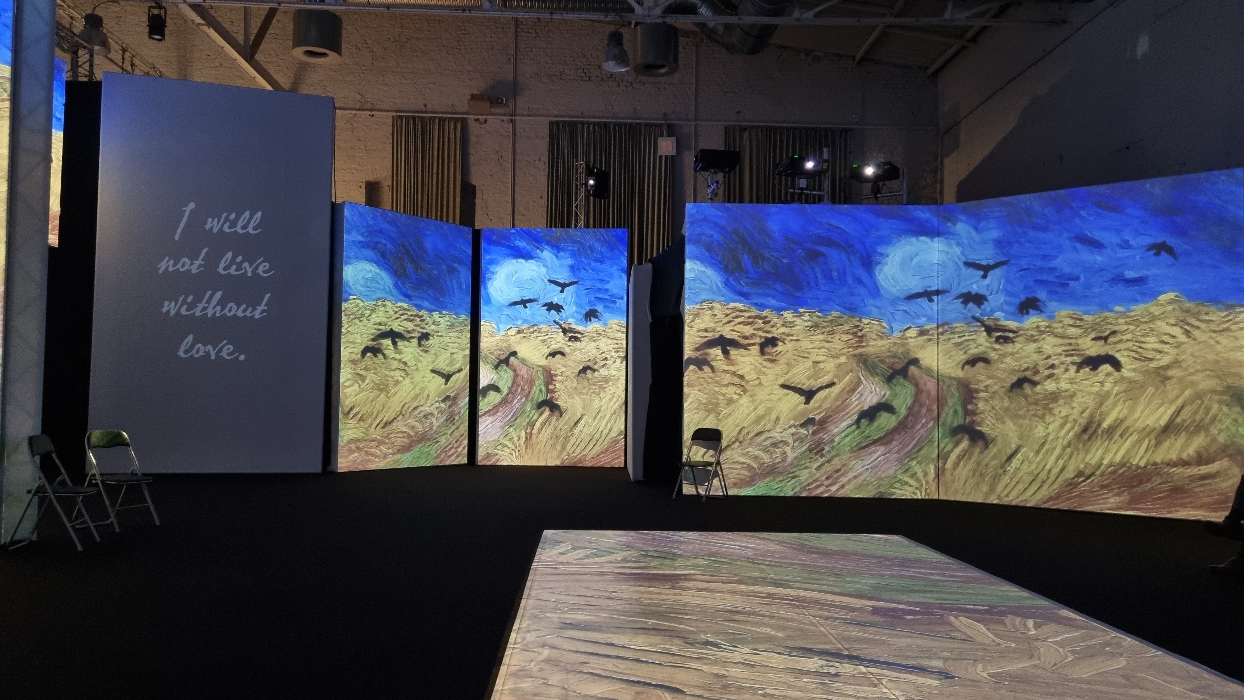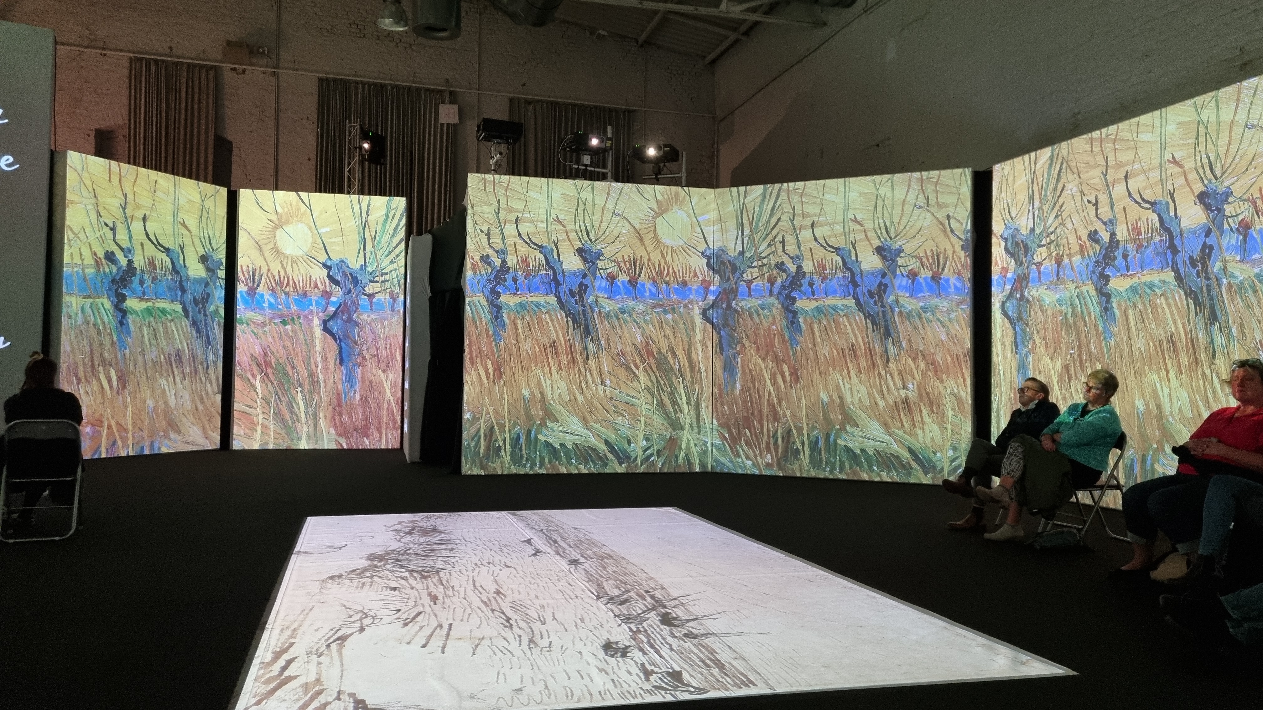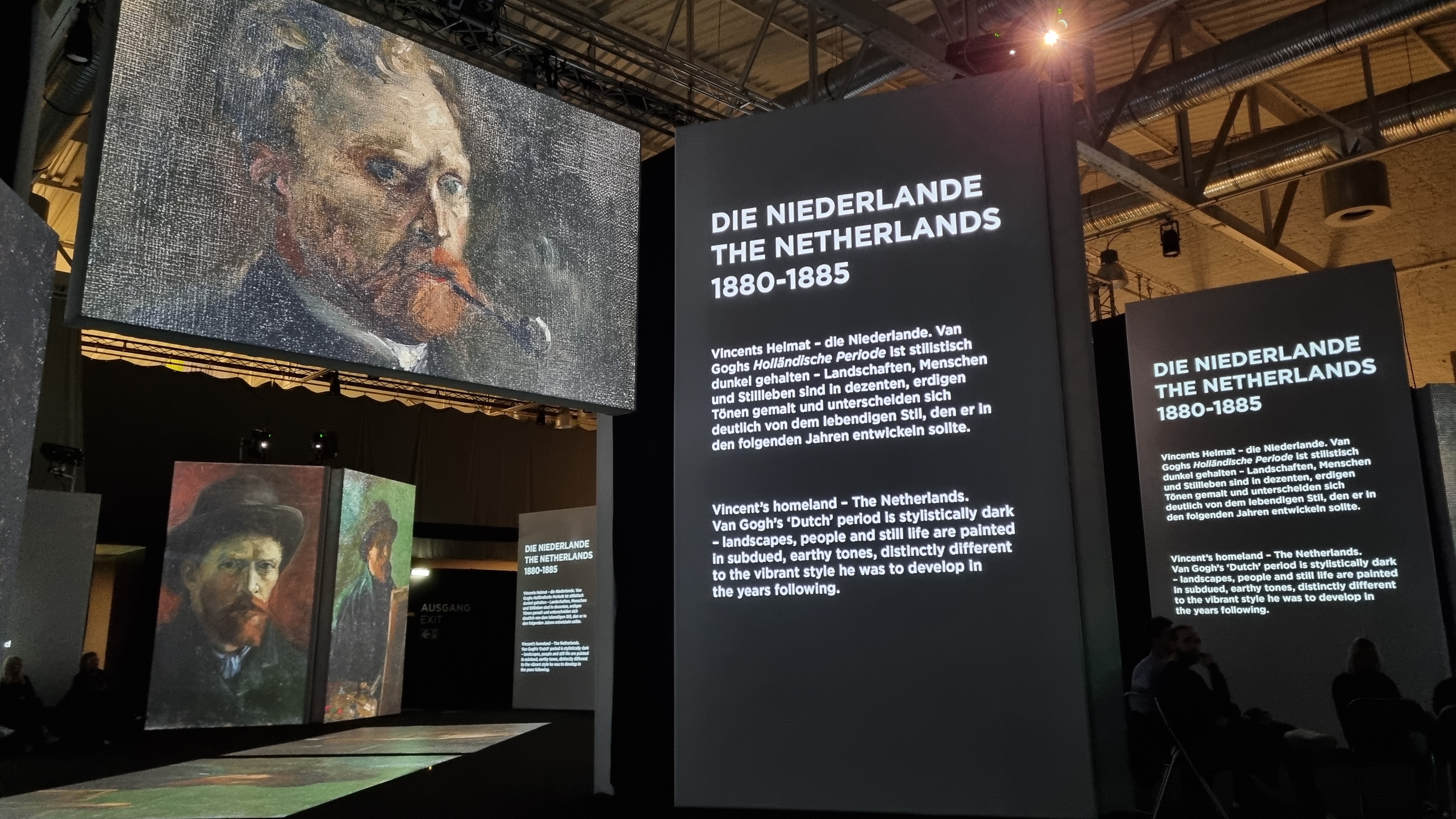 Durch die Bewegung und die Musik kann man bei der Ausstellung schnell mal vergessen, wo man sich gerade befindet. Die ungewöhnliche Art des Präsentierens sorgt sowohl bei Älteren als auch Jüngeren für Bewunderung. Immer wieder hört man Zuschauer:innen, die andere Besucher:innen auf Besonderheiten auf der Leinwand hinweisen, oder Kinder, die auf den Bodenprojektionen spielen. Van Gogh Alive wurde von Grande Experiences entwickelt und wirbt mit einem kontaktlosen digitalen Kunsterlebnis, das den Besucher:innen die einmalige Gelegenheit bietet, in Van Goghs Kunst einzutauchen und sich in seine Welt zu begeben. Das ist ihnen mit über 3.000 Bildern gelungen.