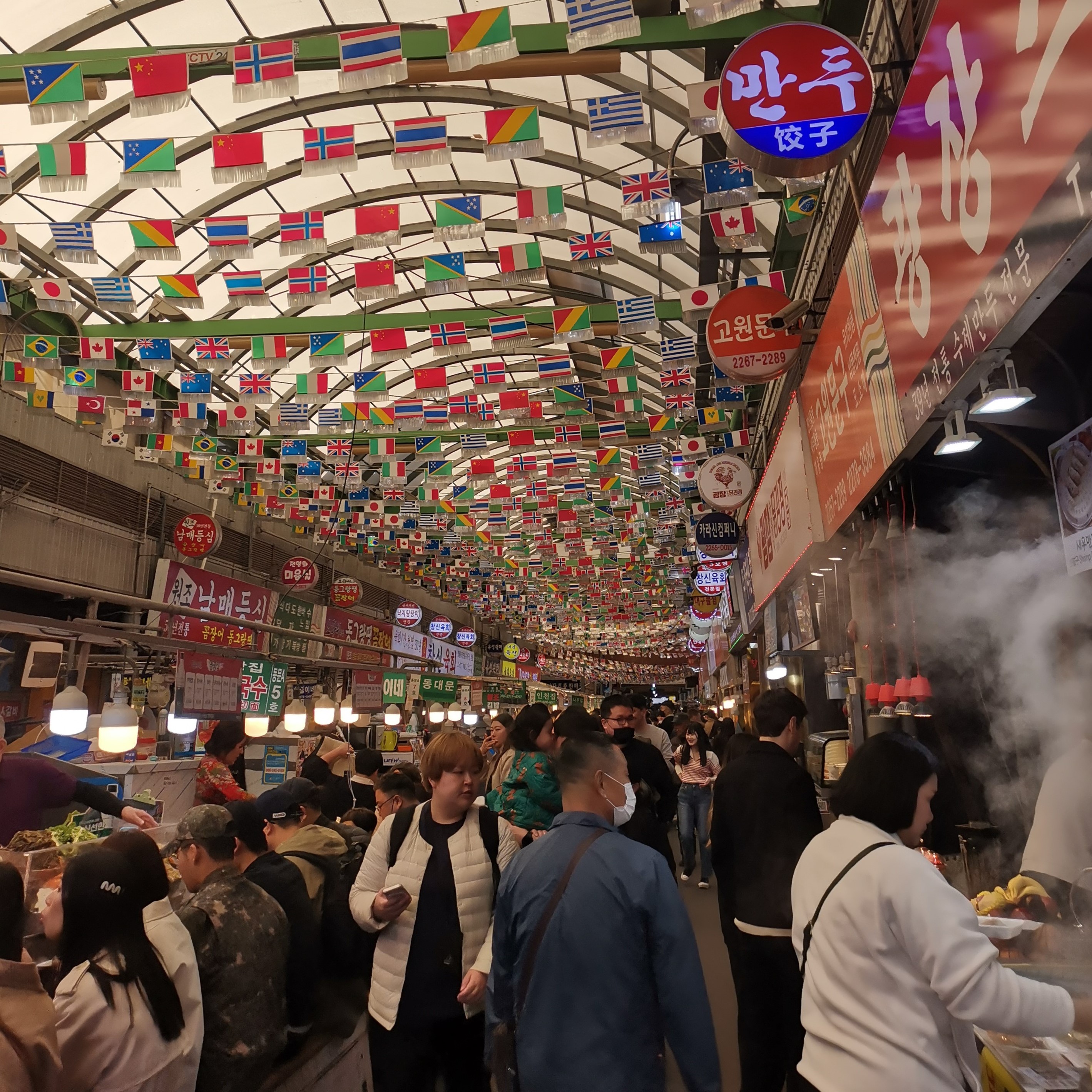 Vom Streetfood in Korea war ich immer wieder aufs Neue begeistert. Die Streetfood-Kultur ist historisch gewachsen. Straßenküchen sind entstanden, um arme Menschen mit günstigem Essen zu versorgen und haben sich zu einem wichtigen Teil der koreanischen Esskultur entwickelt. Streetfood ist natürlich keine koreanische Besonderheit, denn in vielen (u.a. asiatischen) Ländern kann man sehr gutes Streetfood essen. Korea muss sich in Sachen Streetfood allerdings nicht verstecken. Ich liebe es, dass man an jeder Ecke wahnsinnig gutes und günstiges Essen finden kann. In den kleinen Läden, Wagen oder Ständen werden häufig nur wenige Gerichte verkauft. Dafür hat man an vielen Orten in Südkorea eine sehr große Auswahl an Ständen. Einer meiner liebsten Orte war der Gwangjang Markt (siehe Foto oben links), einer der ältesten Märkte in Seoul, wo traditionelles koreanisches Essen wie Kalguksu (Nudelsuppe), Hoe (Rinderfleischtartar) oder TTeokbokki (Reiskuchen) verkauft wird. Viele Streetfoofstände verkaufen aber auch neue Kreationen. Zum Beispiel haben wir auf dem Dongdaemun Markt in Seoul den Baffle probiert. Das ist gebratener Reis aus dem Waffeleisen, der mit verschiedenen Toppings wie Bacon oder Shrimp und Soßen serviert wird. Man kann Tage damit verbringen, sich durch die verschiedenen Märkte und Stände zu probieren – leider wird man aber irgendwann satt.