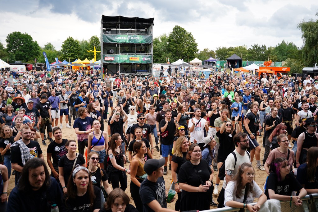 Heute und morgen spielen jedoch erstmal andere Bands. Auf dem Line Up stehen unter anderen My Ugly Clementine, Dilla, Von Wegen Lisbeth, Blackout Problems und die Leoniden. Auf dem Gelände treffen sie auch Sängerin Miri. Die sonst nicht so scheue Miri, wirkt ungewöhnlich wortkarg. Der Blick auf die Bühne hat scheinbar auch ihr ein wenig die Sprache verschlagen. Sie hat sich kurzfristig dazu entschieden, doch nicht zu campen und zieht ein trockenes, warmes Bettchen einem Zelt vor. Das wurde ihr zum Schonen ihrer Stimme und Gesundheit von Foxys Mutter angeboten. Das Wetter ist nämlich an diesem Wochenende sehr wechselhaft. Um dem Schlamm vorzubeugen, haben die Veranstalter Sand vor die Bühne geschüttet. Weitere eher vernünftige Entscheidungen werden mit Blick auf den Auftritt getroffen. Nico und Lukas stürzen sich bei diesem Festival nicht in die Moshpits. Das Verletzungsrisiko sei zu groß. Das heißt jedoch nicht, dass nicht gefeiert wird. „Der schmeckt halt einfach gut“, sagt Lukas über den Green Juice, den Signature Cocktail des Festivals. Ab und an sieht man, wie die drei mit ungläubigen Blicken auf die Bühne schauen. So recht vorstellen, können sie es sich scheinbar noch nicht, dort aufzutreten.