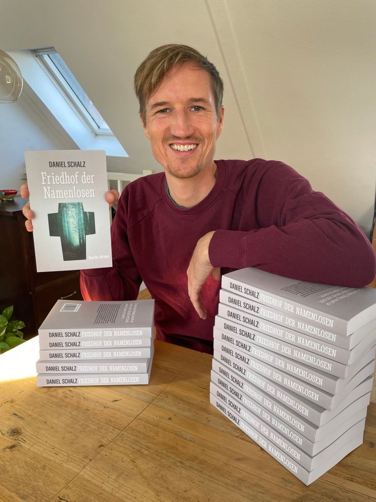 Wie viele leidenschaftliche Leser:innen wohl auch davon träumen, eines Tages einmal ein eigenes Buch zu schreiben? Schwer zu sagen. Wie man das angeht und was passiert, wenn das Manuskript fertig ist, weiß Daniel Schalz. Er ist hauptberuflich Redakteur bei der PR-Agentur fischerAppelt und nebenbei Autor von mittlerweile zwei Büchern: Mit „Unser Leben mit Werder“ hat er 2023 einen Sammelband mit Geschichten von Fußballfans im Verlag Die Werkstatt herausgebracht, anschließend im Self-Publishing seinen ersten Roman, den Berlin-Krimi „Friedhof der Namenlosen“, veröffentlicht. Im Interview spricht er über Herausforderungen beim Schreiben, den Unterschied zwischen Verlagsveröffentlichung und Self-Publishing und den Stellenwert von Feedback im kreativen Prozess.